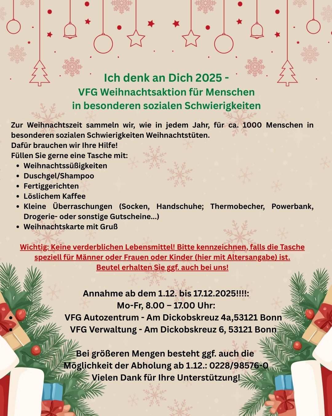 Weihnachtstaschenaktion beim VFG